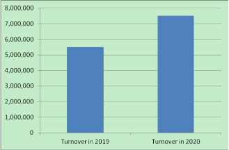Оборот в 2019 году: 5 500 000 долларов США в 2020 году: 7 500 000 долларов США. Увеличение ставки: 36,36%